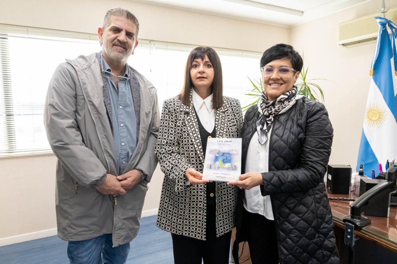 La ministra de Educación, Cultura, Ciencia y Tecnología de la provincia de Tierra del Fuego, AeIAS, Anaíia Cubino, junto al Secretario de Educación, Pablo López Silva, mantuvo un encuentro con la jueza Federal de la ciudad de Río Grande, Mariel Borruto, quien realizó la entrega de libros de su autoría sobre la Ley 19.640.