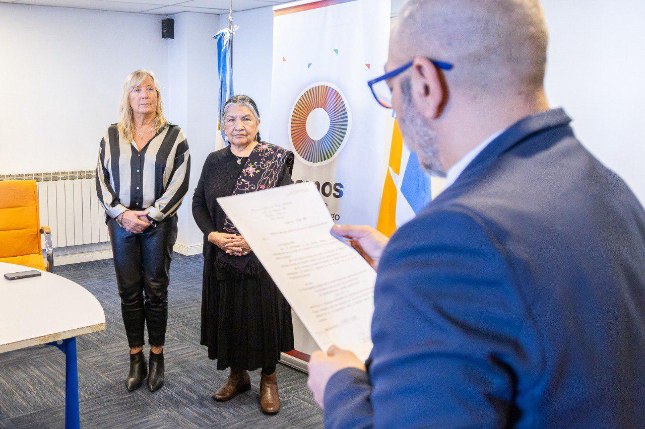 Tarcila, es perteneciente al Pueblo quechua, es la fundadora del Enlace Continental de Mujeres Indígenas de las Américas (ECMIA) y cuenta con una destacada trayectoria como ex miembro del Foro Permanente para las Cuestiones Indígenas de las Naciones Unidas.  La ceremonia contó con la participación representantes del Gobierno Provincial, entre ellos, la Secretaria de Derechos Humanos y Diversidad, Abigail Astrada; el Secretario de Justicia, Gonzalo Carrillo; la Subsecretaria de Pueblos Originarios, Pamela Altamirando, y la Subsecretaria de Derechos Humanos, Laura Pacheco.  Por el lado de las organizaciones indigenistas que visitan nuestro territorio para formar parte del foro, estuvieron presentes Eva Gamboa, del pueblo Wichi, y fundadora del Consejo Nacional de la Mujer Indígena de la Argentina. También participó Amancay Quintrileo Logko, representante de la Comunidad Mapuche Lof Kinsikew del Consejo Zonal Lafkenche de la Confederación Mapuche de Neuquén y de ECMIA. Otro nombre relevante fue Elizabet González, del Pueblo Qom de la provincia del Chaco, quien no solo es co-coordinadora del Consejo Nacional de Mujer Indígena de la Argentina, sino que además ostenta el título de primera funcionaria indígena del Poder Judicial del Chaco.  Este encuentro proporcionó un espacio para el intercambio de ideas y experiencias entre diversas comunidades indígenas y funcionarios gubernamentales, destacando la importancia del diálogo y la colaboración en la construcción de políticas inclusivas y respetuosas de los derechos de los pueblos originarios. La presencia de Tarcila Rivera Zea y otras figuras representativas subraya el compromiso del Gobierno Provincial En garantizar el cumplimiento de los derechos humanos de los pueblos y mujeres indígenas.  Al respecto, Tarcila Rivera Zea expresó sentirse “profundamente honrada y emocionada, ya que no es común que el Estado reconozca a las mujeres indígenas”. “Llegar a Tierra del Fuego, de donde antes solo he escuchado historias de exterminio, me llena de gran satisfacción y admiración al saber que las autoridades son sensibles a los derechos de los pueblos indígenas y han logrado avances significativos en su reconocimiento” agregó la lideresa.  Finalmente, la referente de ECMIA se refirió a la resolución del Gobierno Provincial, que posibilita la inclusión de la identidad indígena en las actas de nacimiento expedidas por el Registro Civil de la provincia.  Sobre ello, manifestó que “felicita” a las autoridades y que la “enorgullece tener hermanas, tanto indígenas como no indígenas, que están sensibilizadas con este tema”.  “Este reconocimiento es un hito significativo y un ejemplo positivo para seguir avanzando, especialmente considerando la persistente resistencia en reconocer el derecho a la autoidentificación o a registrarse como parte de un pueblo indígena”, concluyó Rivera Zea.