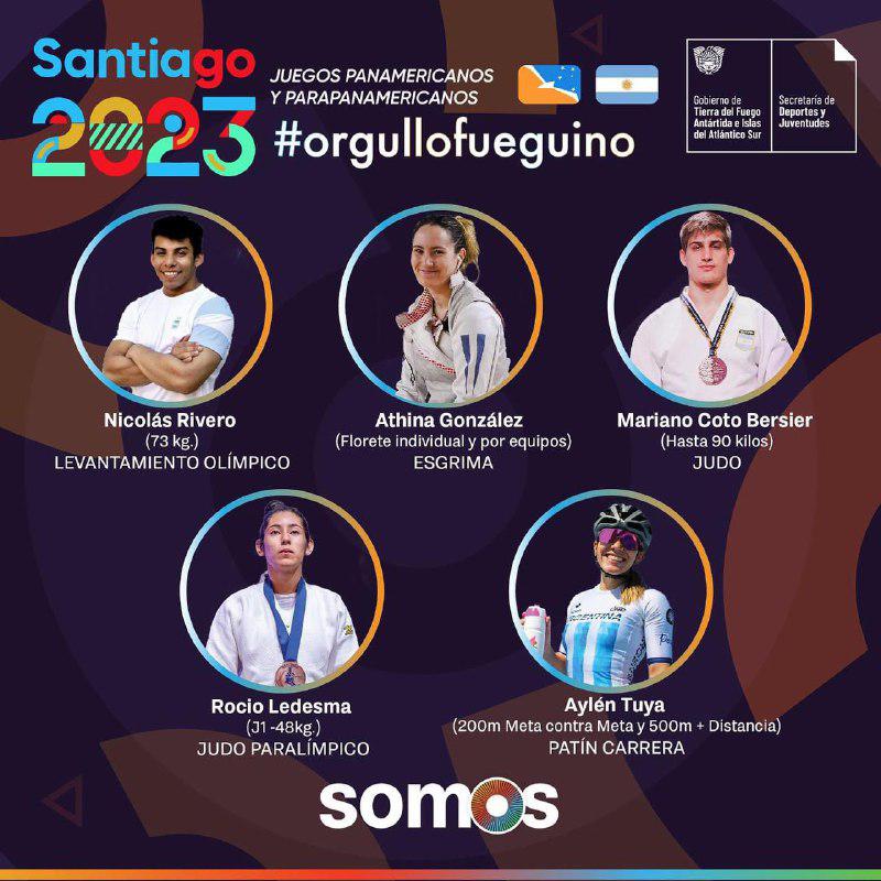 Un total de cinco deportistas fueguinos estarán presentes en la ciudad de Santiago de Chile del 20 de octubre al 5 de noviembre representando a la Selección Argentina y defendiendo los colores del país en los Juegos Panamericanos “Santiago 2023”.